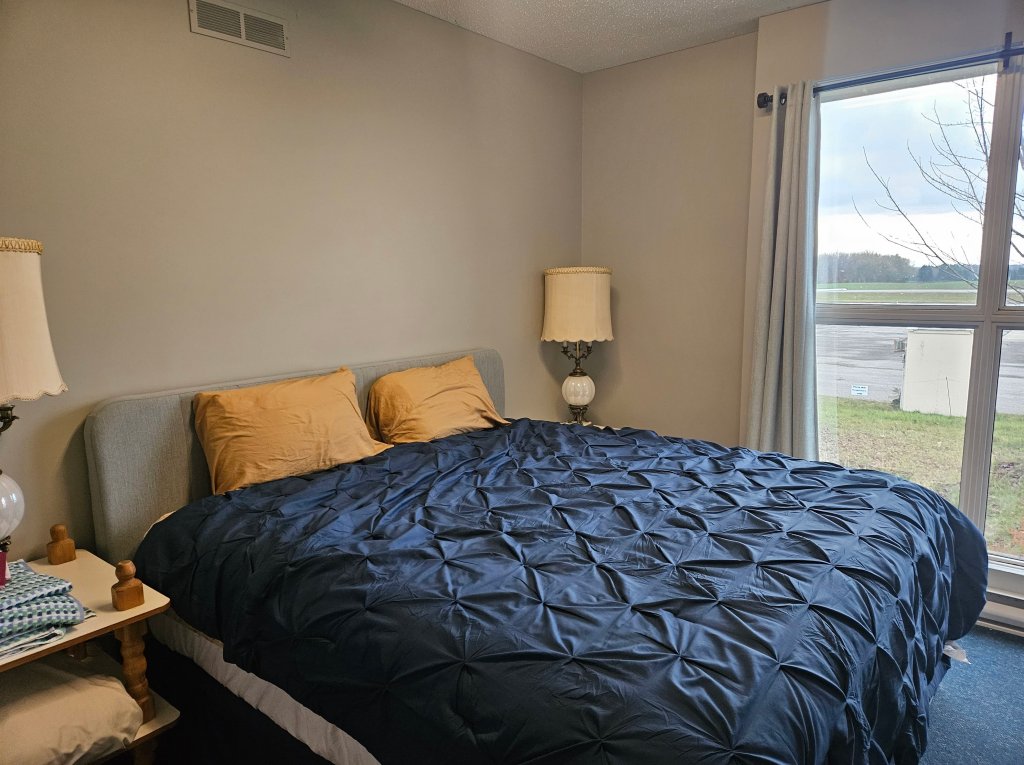 We have 1 King room ($60+hst/night) and 1 Queen room ($50+hst/night) available to rent in the terminal building for overnight accommodation for pilots and their guests. Each bedroom has a locking door. The terminal building has a comfortable lounge and shared washrooms (no showers) that are available for both day and overnight guests to use.