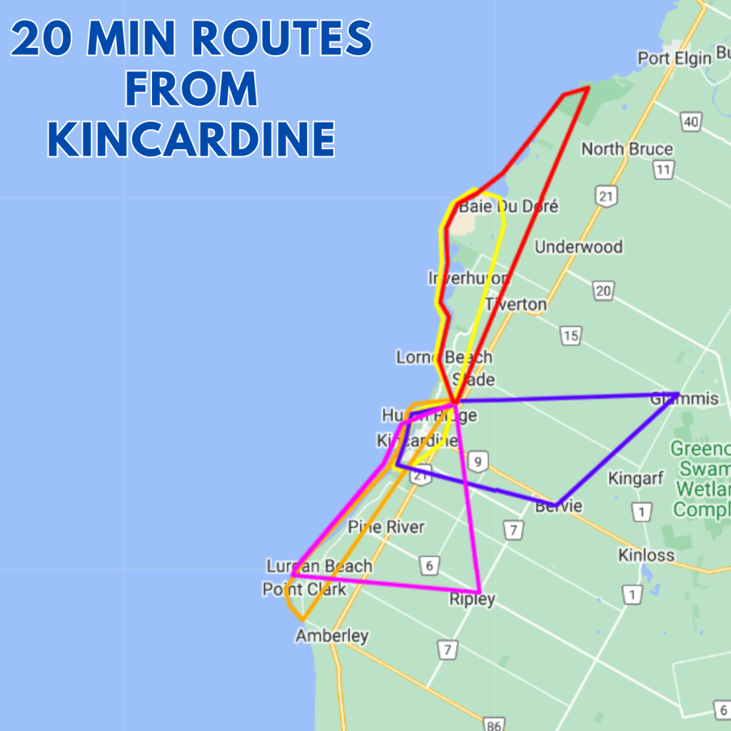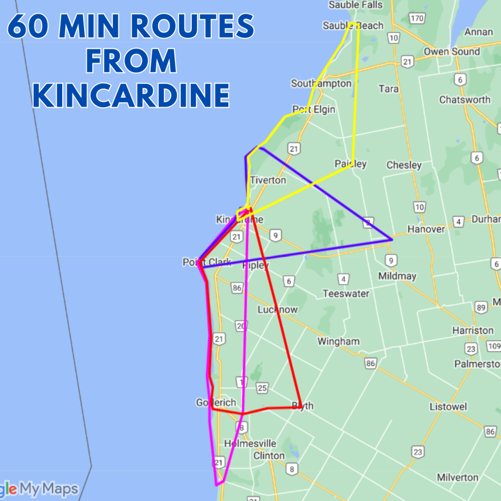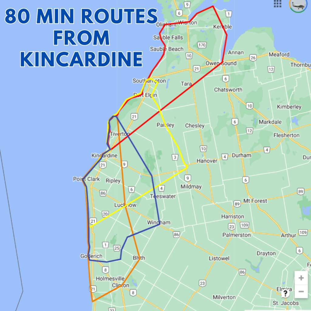 - Red: Sauble Beach, Wiarton, Owen Sound