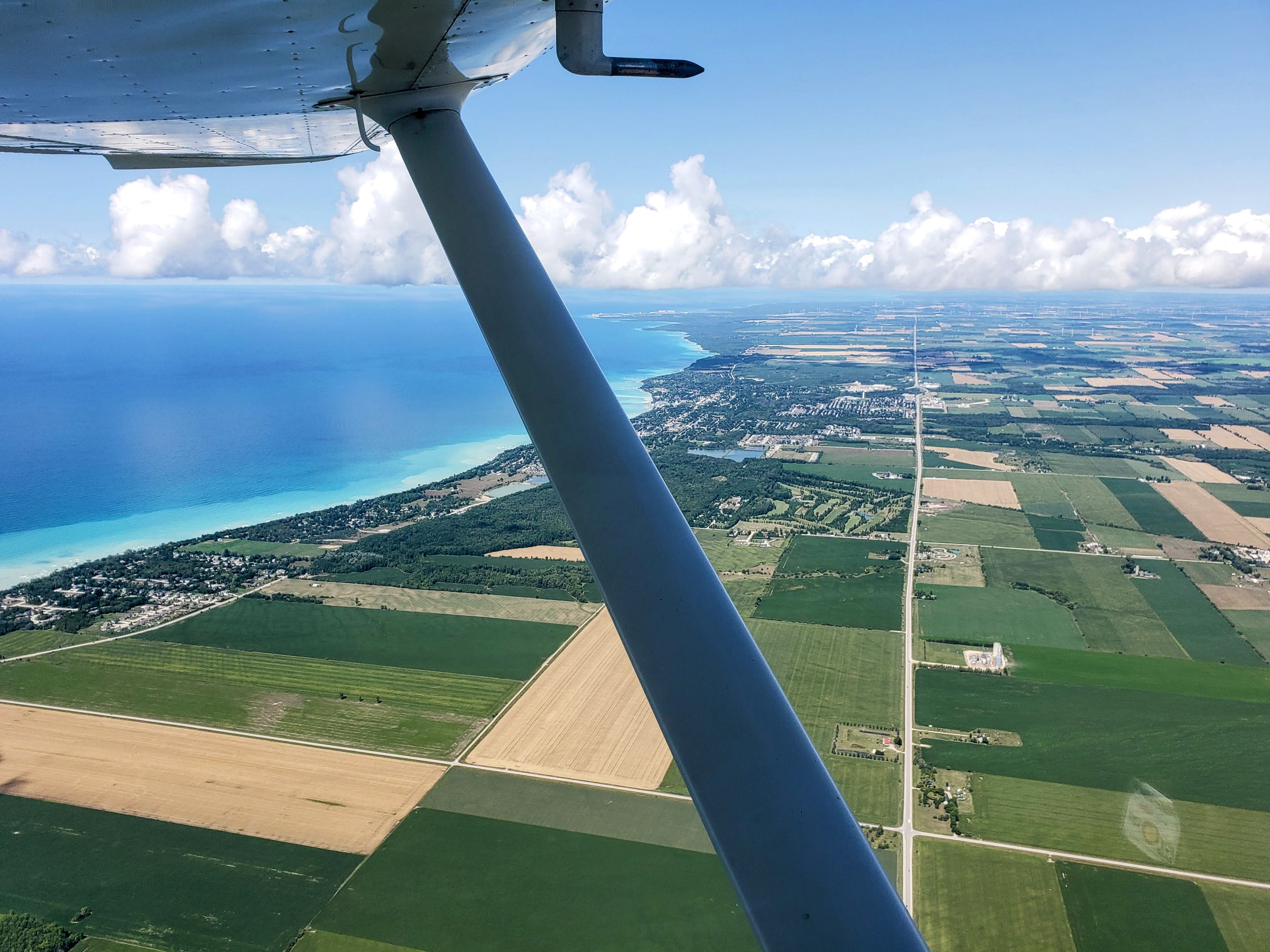 Fly from Kincardine up the coast while enjoying views of Bruce Power, Chantry Island, Sauble Beach, and the Bruce Peninsula. We’ll fly over the town of Tobermory and the docks, including the sunken ships, before continuing along the coast past the Grotto, Lion’s Head, and Wiarton and then continue inland with views of rural farmland on our way back at Kincardine Airport.